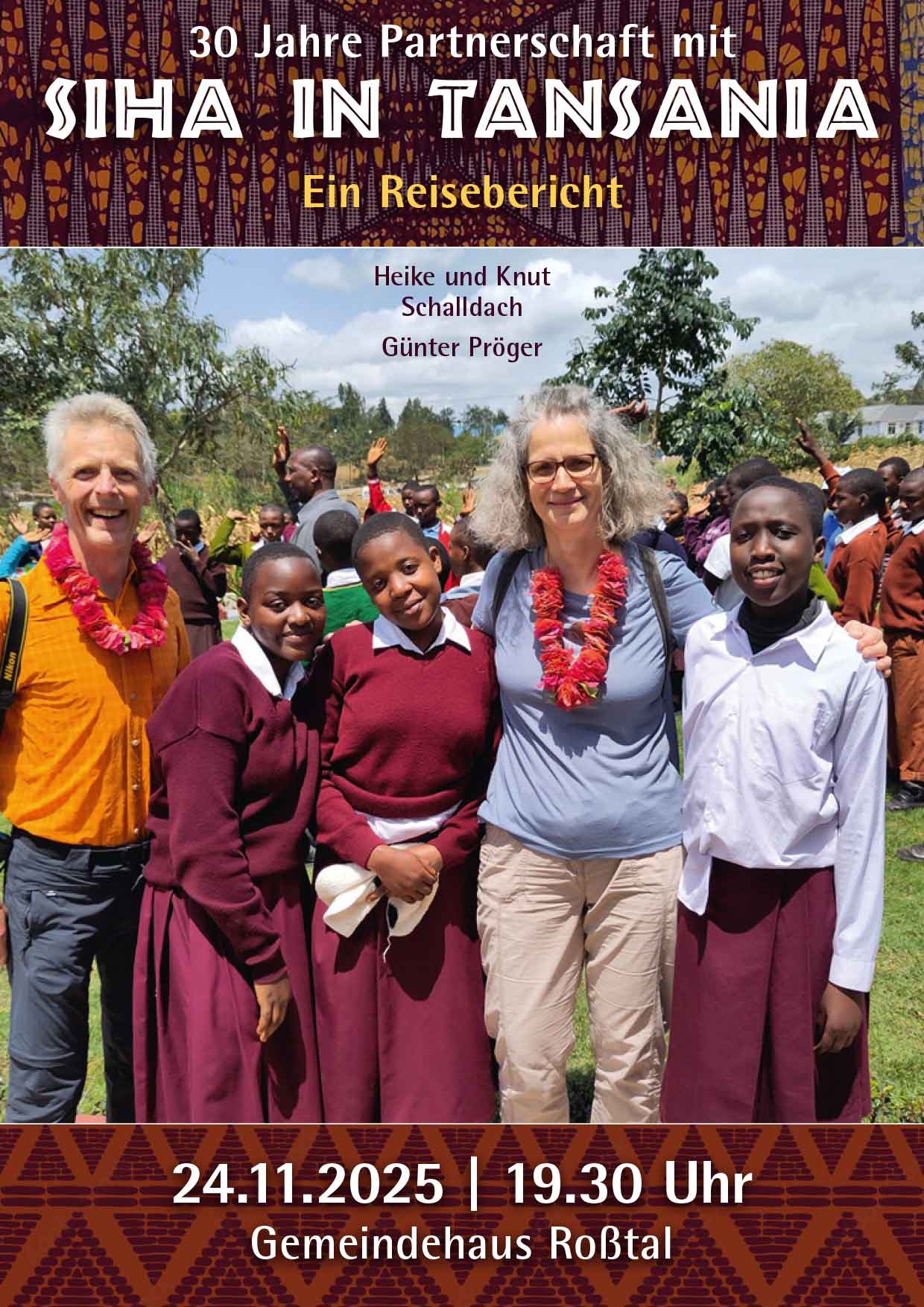 Günter Pröger und Heike undKnut Schalldach berichten in Bildern, kurzen Videos und Erzählungen von ihrer Reise nach Siha, Tansania im Sommer 2025. Eintritt frei.